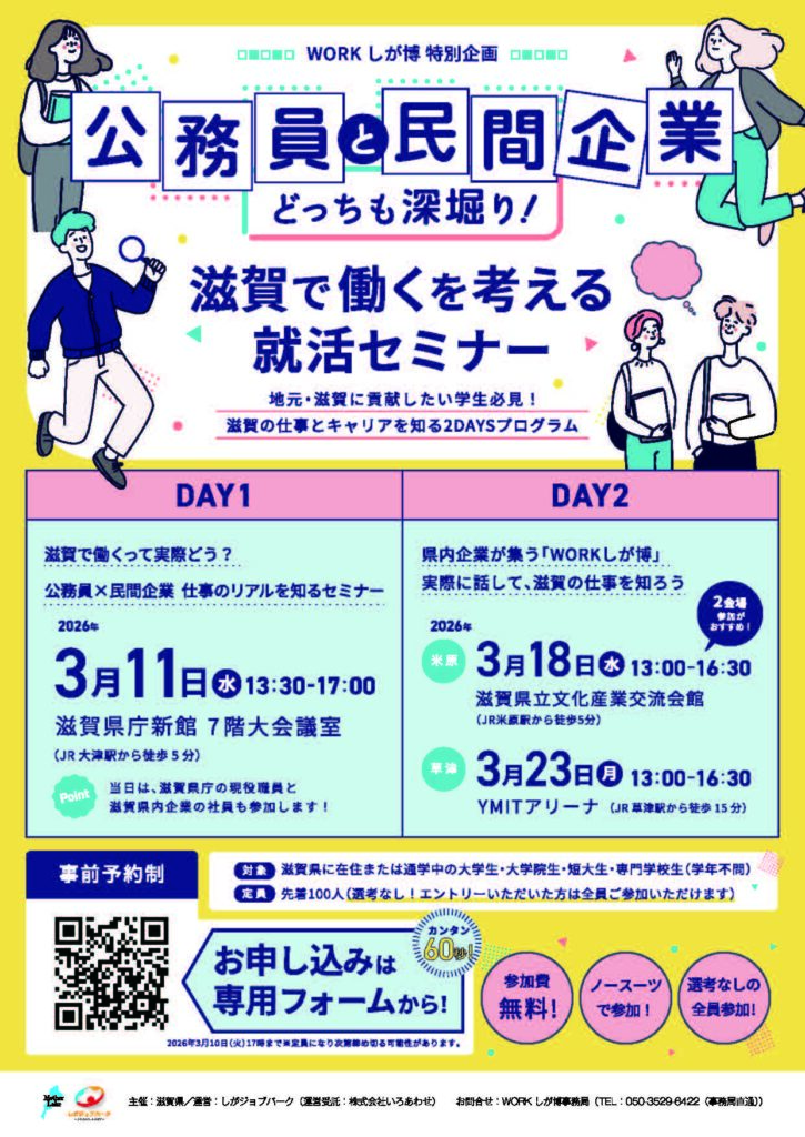 公務員と民間企業どっちも深掘り!滋賀の働くを考える就活イベント【滋賀に在住または通学中の学生限定】