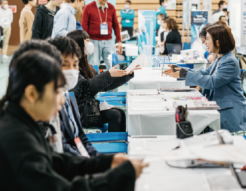 DAY1で整理した自分の大切にしたいことを元に、滋賀県最大級の合同企業説明会「WORKしが博」に参加。企業担当者から直接、仕事の内容や企業の魅力を聞くことができます。会場ごとに違う滋賀の企業が出るので両会場参加がおすすめ!