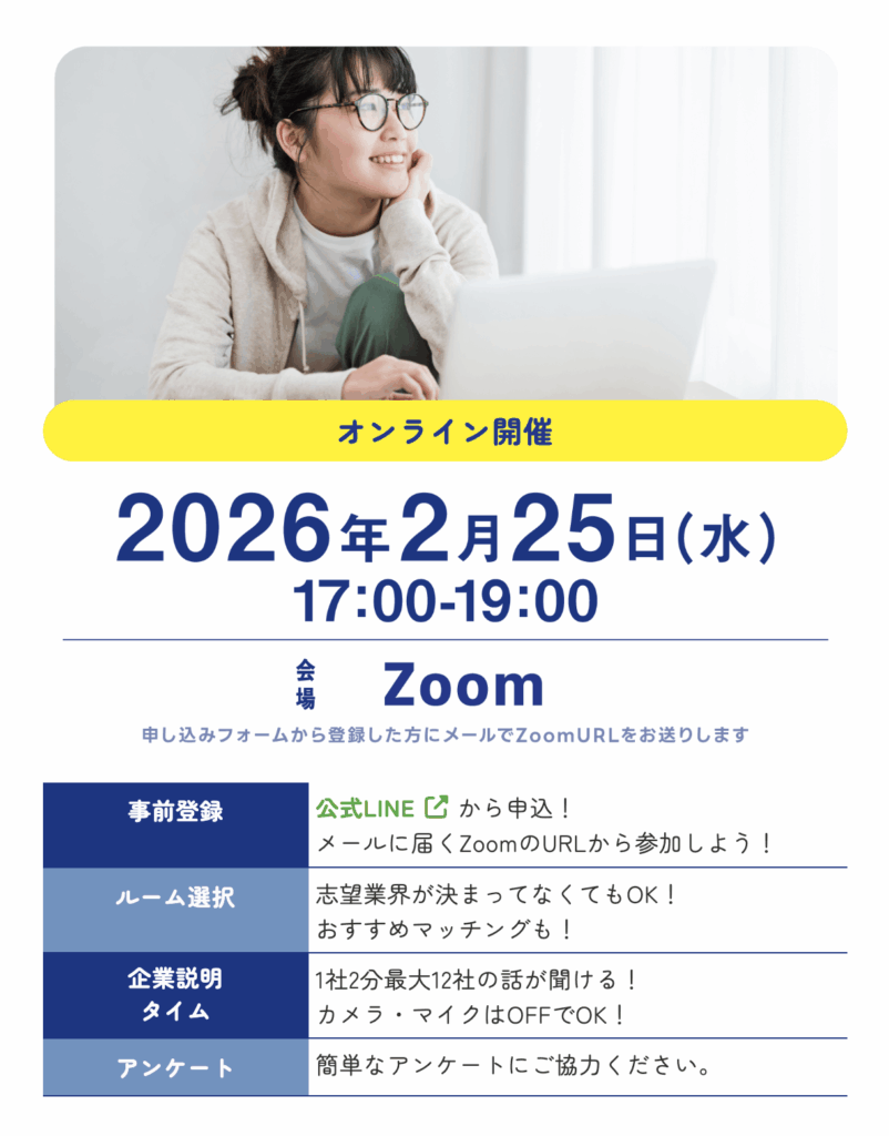 | 対象 | 大学生・大学院生・短大生・専門学校生・高専生/全学年(既卒可) |