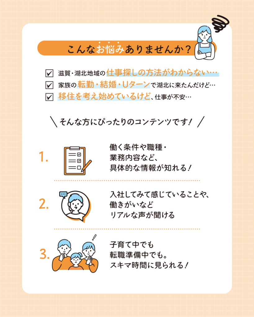 | 対象 | 滋賀県湖北地域(長浜市・米原市)での就労を検討している人 |