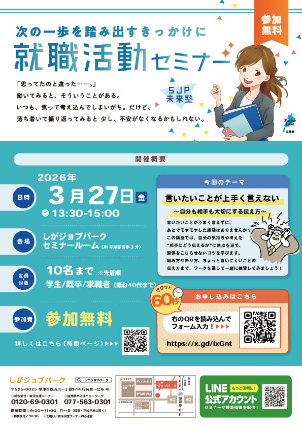 言いたいことが上手く言えない〜自分も相手も大切にする伝え方〜「就職活動セミナーSJP未来塾」【学生/既卒/20代/30代/40代】