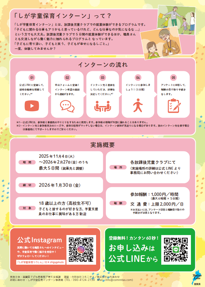 しが学童保育インターン事務局】からの就活イベントの案内が届きました!ぜひ、ご参加ください!